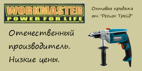Мы, «Регион Трейд» - официальные дилеры фирмы WorkMaster. У нас вы можете без труда заказать и купить оптом продукцию данного изготовителя. У нас проводится множество акций, и мы предлагаем вам приобрести электрические инструменты и прочие товары WorkMaster по гибкой цене. Также существует возможность оформить заявку на бесплатную доставку товара по Москве и Московской области. Так как «Регион Трейд» является официальным дилером этого бренда, у нас вы найдете весь ассортимент фирмы.