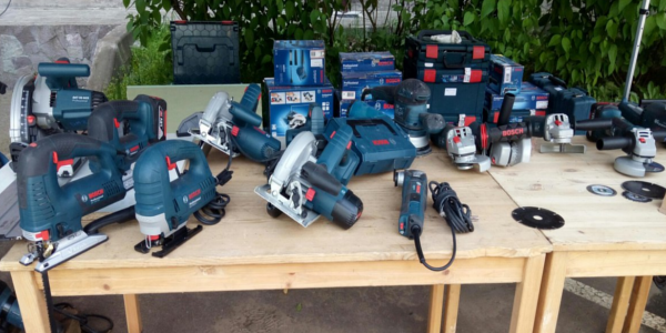 Вторая часть семинара была на улице. Участники вышли к столам, на которых была представлена продукция Bosch - новые модели электроинструментов. Гостям семинара подробно рассказали о каждой модели дальномеров, перфораторов, шуруповертов и так далее.