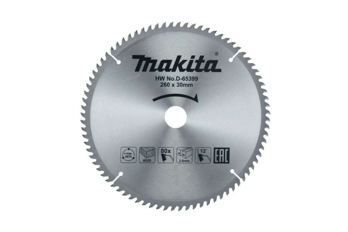 Makita Пильный диск для дерева, 260x30x1,8x80T D-65399