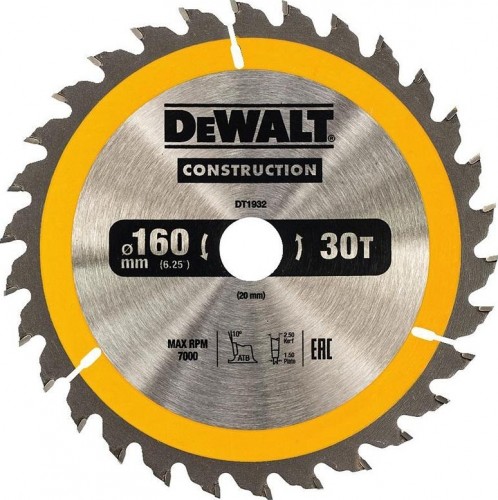 Пильн.диск CONSTRUCTION п/дер. с гвоздями 160/20 30 ATB +10° DeWalt